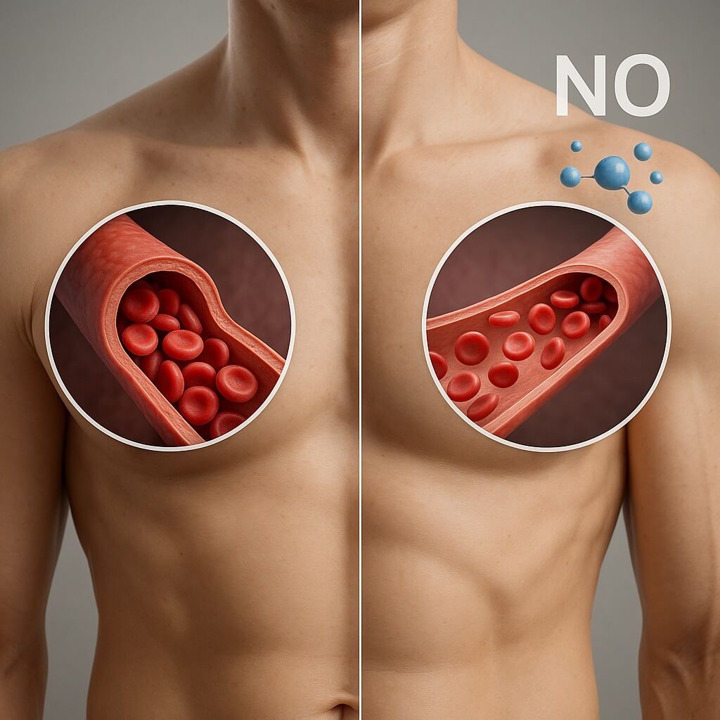 Mit zunehmendem Alter produziert unser Körper immer weniger Stickstoffmonoxid (NO) – ein Molekül, das die Blutgefäße entspannt und den freien Blutfluss ermöglicht.